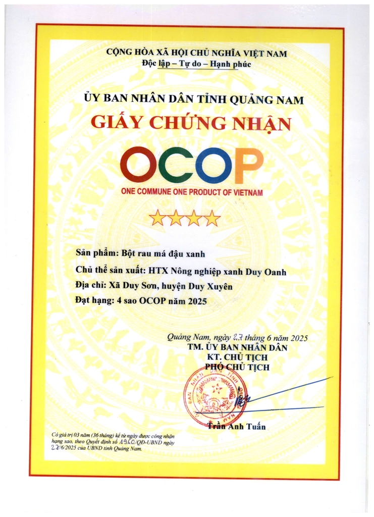 Đơn vị sản xuất: Hợp tác xã Nông nghiệp xanh Duy Oanh