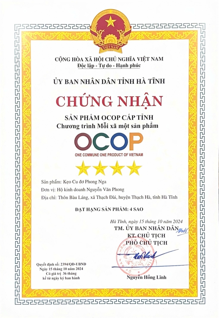 Đạt tiêu chuẩn: OCOP 4 SAO