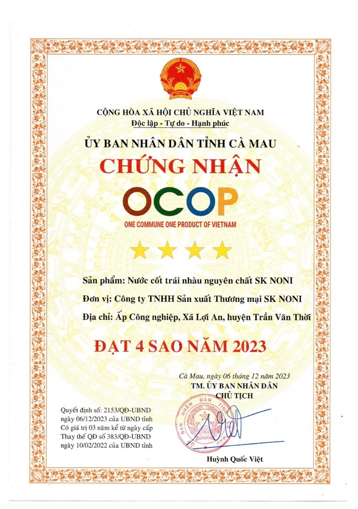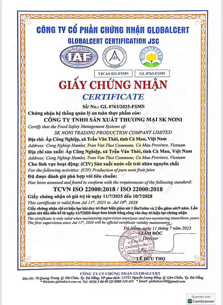 Đơn vị sản xuất: Công ty TNHH Sản xuất Thương mại SK NONI