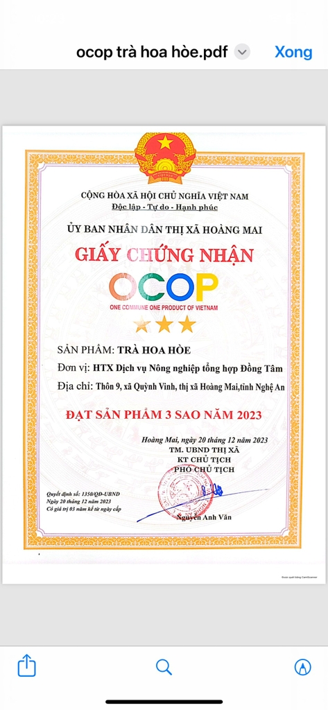 Đơn vị sản xuất: Hợp tác xã Dịch vụ nông nghiệp Tổng hợp Đồng Tâm